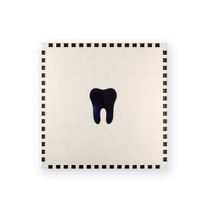 Quadratische Holzbox mit Zahnmotiv