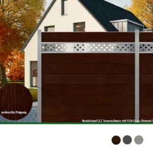 Mit den Dekoreinsätzen aus Edelstahl oder Glas und den Lichtleisten passen Sie die Sichtschutzanlage Ihren persönlichen Bedürfnissen an. Alle Teile, WPC-Profile, Dekorprofile, Licht- und Adapterleisten gibt es auch einzeln zur individuellen Planung.