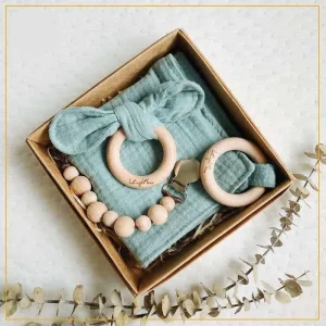 Wiladu Geschenkset Baby Jungen und Mädchen Schnullerkette und Schnuffeltuch, Beißring und Knisterspaß