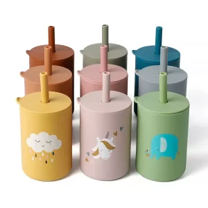 Wiladu Trinklernbecher Trinkbecher aus Silikon mit Strohhalm Trinklernbecher Silikonbecher 160 ml