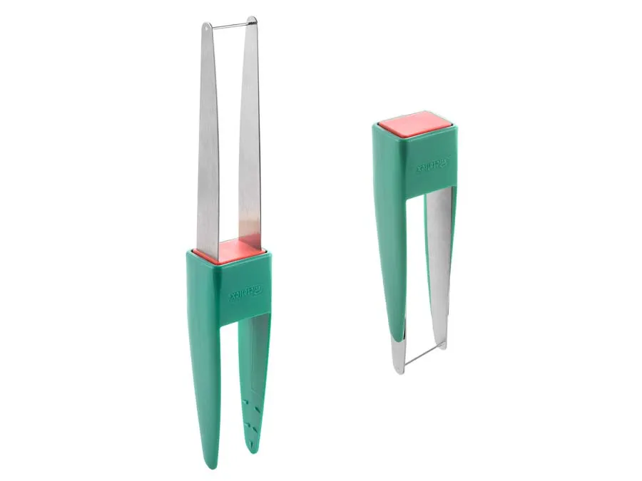 Beide Teile des Melonenschneiders sind spülmaschinengeeignet. Zum Verstauen können sie platzsparend ineinandergesteckt werden.