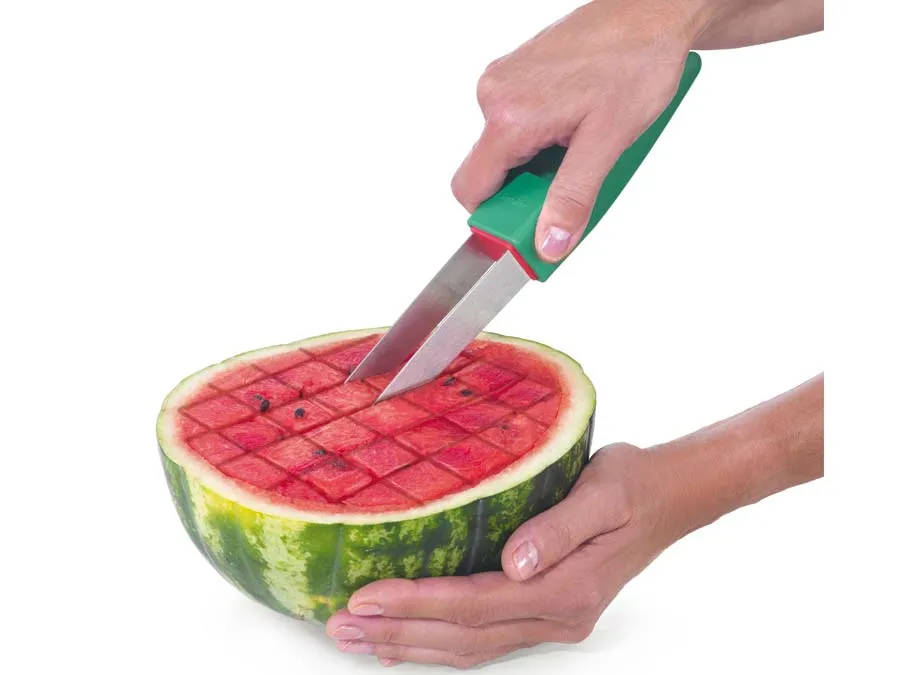 Was wäre ein Sommer ohne erfrischend-saftige Melonen? Das schneiden und zerteilen – klassischerweise in Scheiben – gestaltet sich gerade bei großen Wassermelonen oftmals recht mühsam.