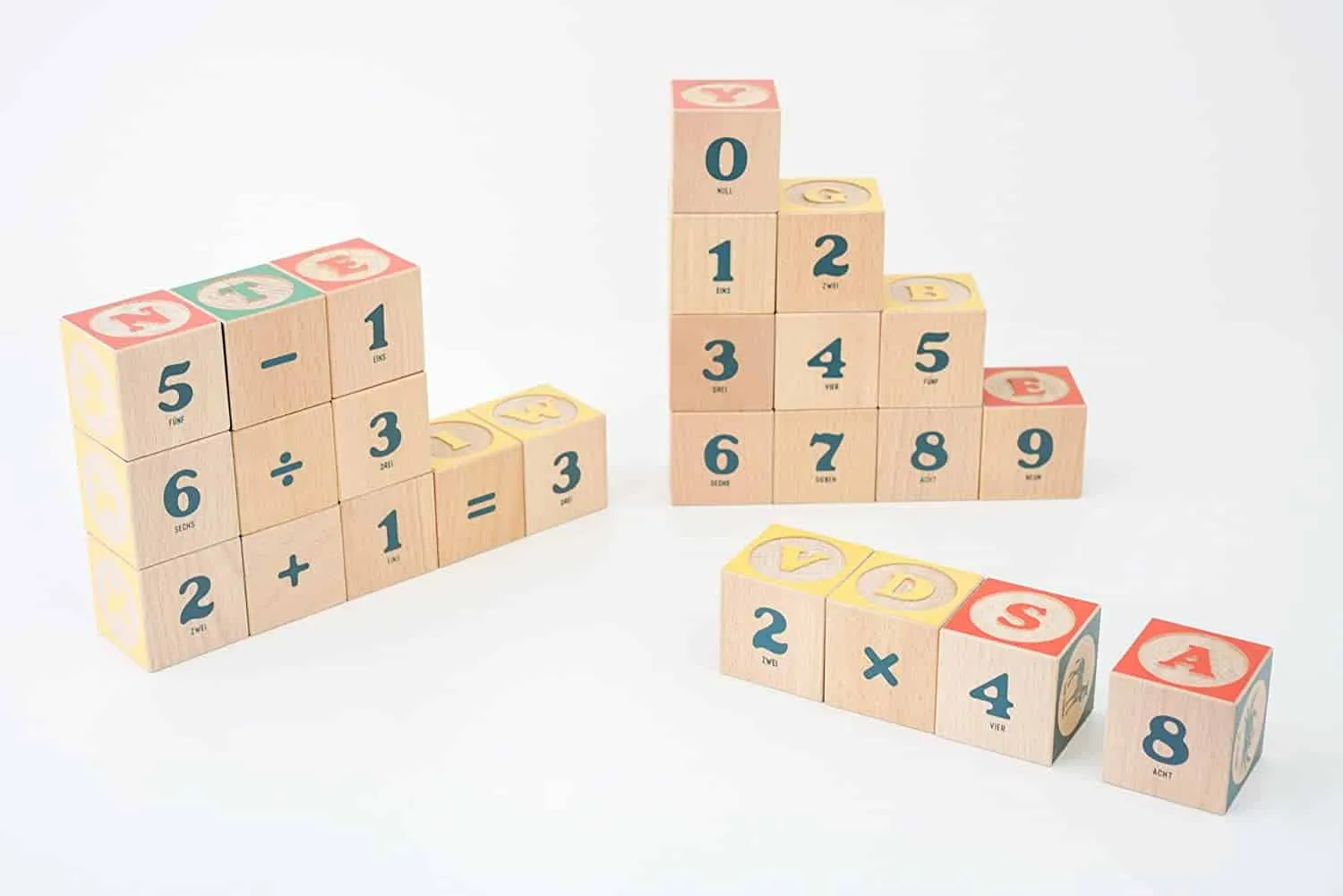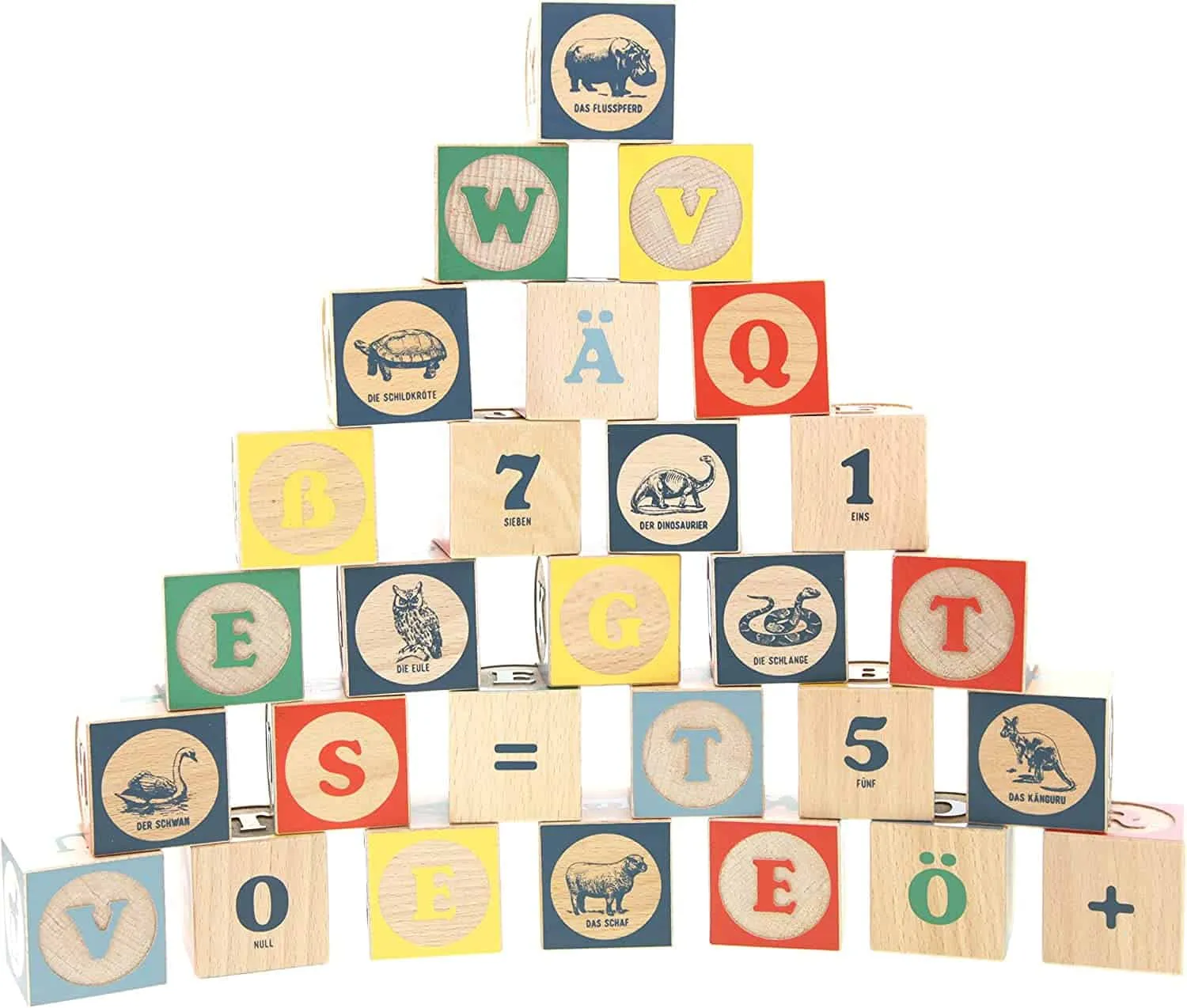 - Set von 28 Holzklötzen mit ABC-Buchstaben, Tierbildern, Zahlen und mathematischen Symbolen. Kinder lernen Wörter, Zahlen, Tiernamen oder bauen sich einfach einen hohen Turm!