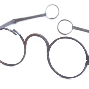 Ein Replik der ältesten Nietbrille der Welt aus Holz aus dem 14. Jahrhundert, original verglast.