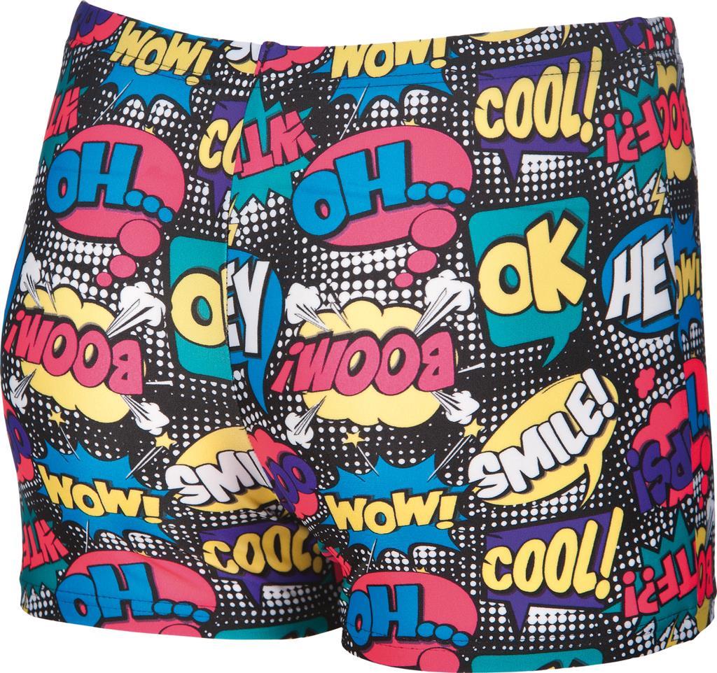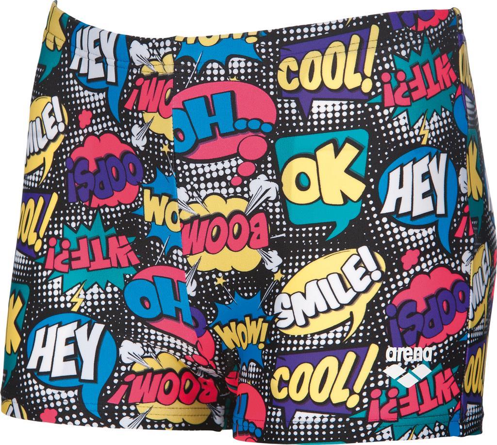Die freche arena Badehose Hey für Kinder und Jugendliche ist perfekt für Sport- und Freizeitschwimmer geeignet. Aus chlor- und salzwasserbeständigem MaxFit Material mit integriertem UV-Schutz UPF50+. Der Elastananteil garantiert eine optimale Passform und höchsten Tragekomfort. Die teilweise abgefütterte Vorderseite schafft ein angenehmes Tragegefühl. Über die innenliegende Kordel lässt sie sich leicht anpassen, für optimalen Sitz. Der originelle Print begeistert die jungen Schwimmer.