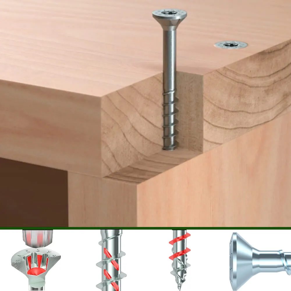 Universell einsetzbare Schraube für den Innen-und Außenbereich mit herausragenden Eigenschaften. Die AS-PRO Schraube mit Senkkopf aus verzinktem Stahl ist unser Einstiegsprodukt in dieser Schraubenfamilie. Selbst diese Schraube wird Ihren Ansprüchen gerecht und hat darüber hinaus ein perfektes Preis-/Leistungsverhältnis.