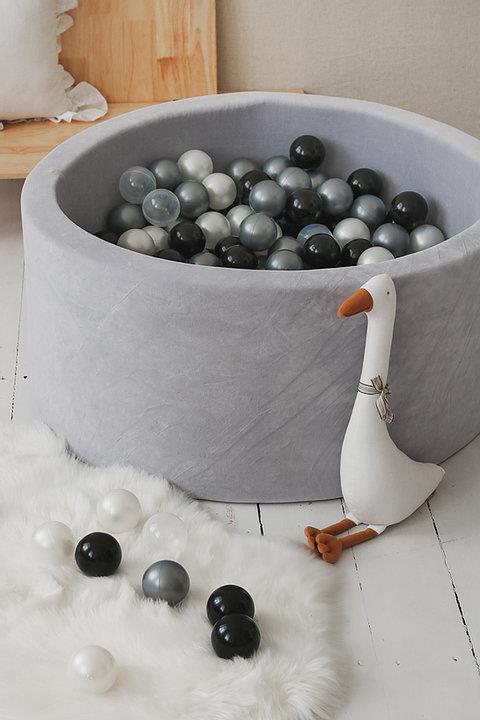 Dieses hochwertige Bällebad besteht aus robustem, elastischem Schaum, der mit einem Baumwollbezug überzogen ist.