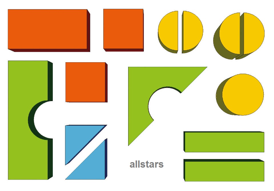 Das 14-teilige Baumodul MAXI gehört zu den beliebten Bauklötzen – Therapiebausteinen – und ist sehr robust und langlebig;