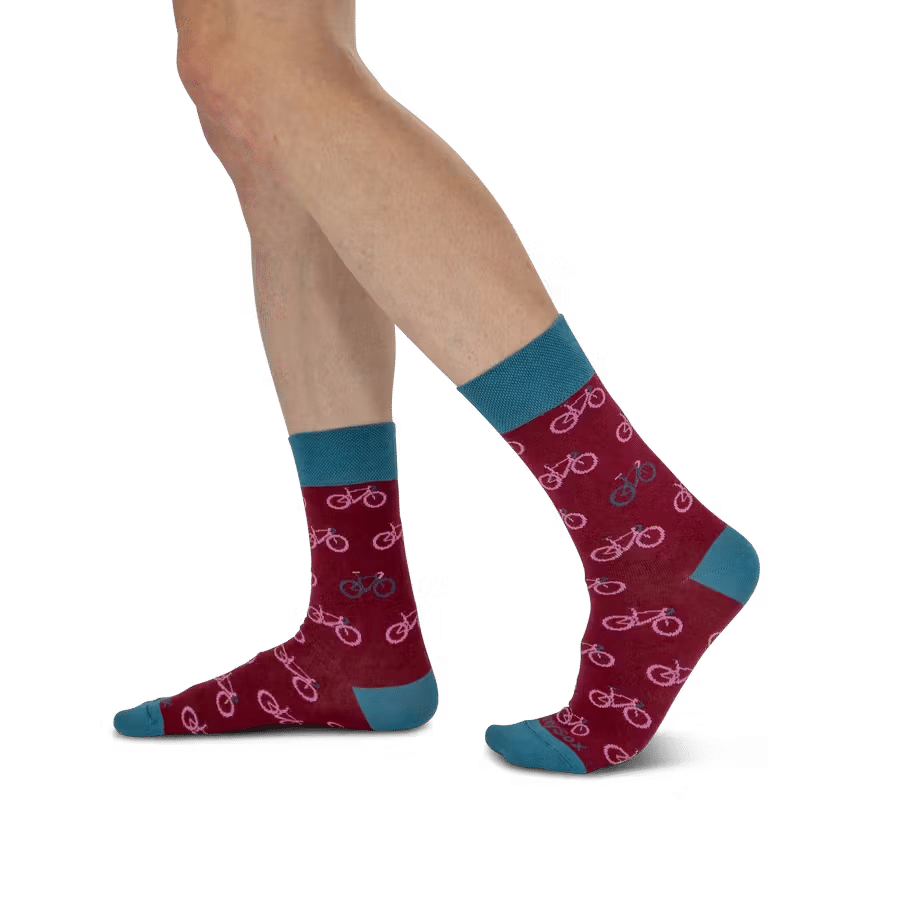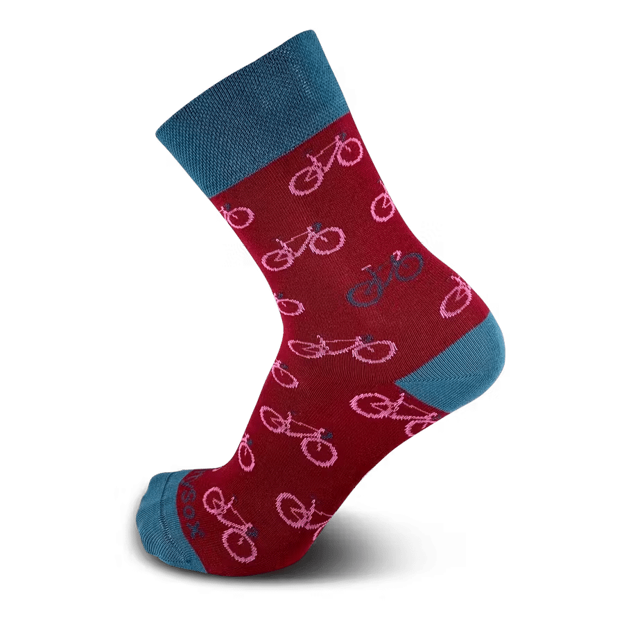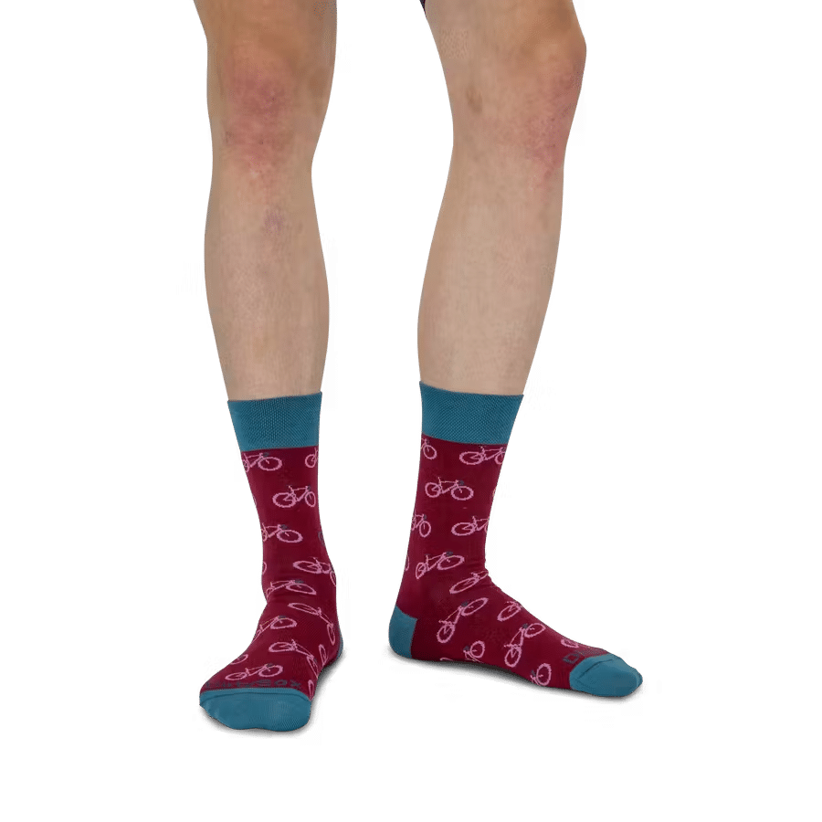 Wir sind so radsportverrückt, dass wir auch bei der Arbeit ans Velofahren denken. Um unsere Leidenschaft auch neben dem Velo ausdrücken zu können, gibt es die DirtySox Bici-Kollektion. Das Dunkelblau wird mit den roten und orangenen Velo-Motiven garantiert zum Blickfang in jedem Bürogebäude.