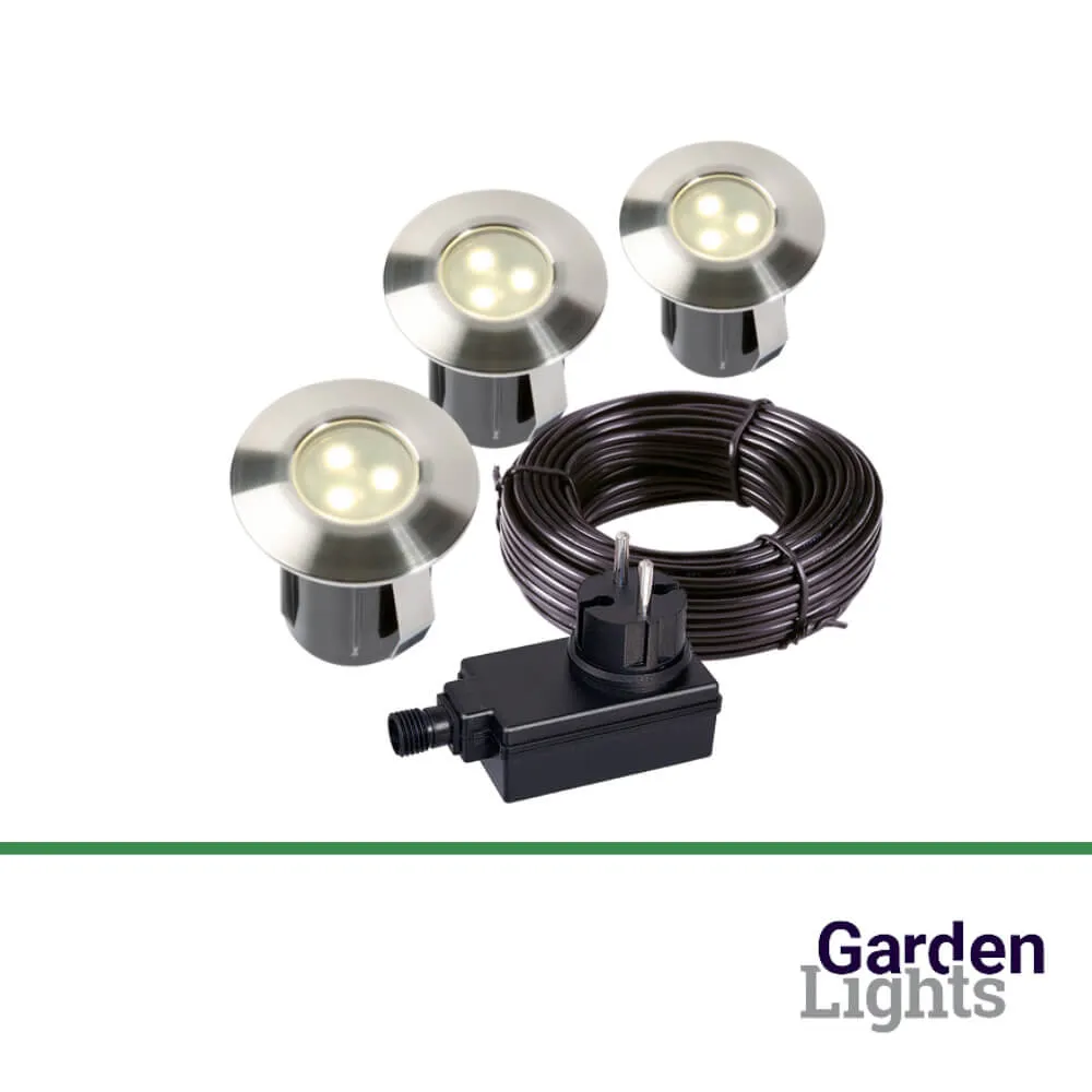 Das Birch Set besteht aus drei Spots, die sich ideal für Stege, Terrassen und Gartenwege eignen. Die warmweiße Leuchtmittel schafft ein behagliches Ambiente in Ihrem Garten. Platzieren Sie mehrere Bodeneinbauleuchten nebeneinander und genießen Sie den schönen Effekt. Sie werden außerdem bemerken, dass Sie sich ein Stück sicherer fühlen. Mit dem Birch Set gehören dunkle Bereiche in Ihrem Garten der Vergangenheit an.