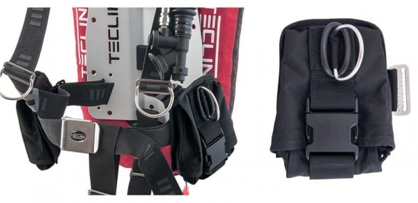 Die Montage verfolgt senkrecht auf dem Bauchgurt, wobei die Bleitasche mit dem integrierten Gurtstopper gegen Verrutschen gesichert werden kann.