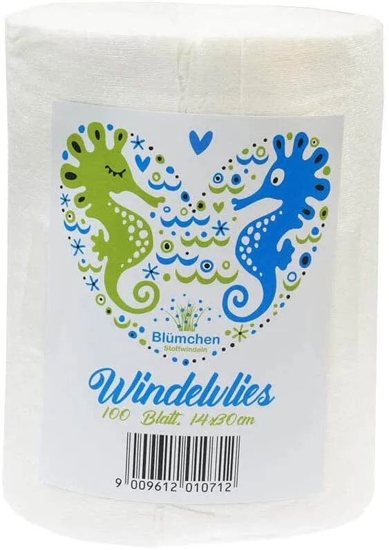 Blümchen Windelvlies besteht aus dünnen, reißfesten Vlieseinlagen, die als Einmallage zwischen Babys Haut und der Stoffwindel platziert werden. Das Material ist besonders weich, hautfreundlich und biologisch abbaubar. Mit einer Größe von 16 x 30 cm passt es perfekt in gängige Stoffwindelsysteme und bietet zahlreiche Vorteile im Wickelalltag.