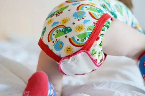 Aktuelle Stoffwindelmodelle haben in der Regel ein sehr bequemes Design und schränken Dein Kind in seinen Bewegungsabläufen nicht ein. Im Vergleich zu konventionellen Windeln kann es vorkommen, dass sie etwas mehr auftragen und einen größeren Popo erzeugen. Besonders in der ersten Phase, wenn Dein Kind noch sehr klein ist, kann sich das bemerkbar machen. Die größere Menge Stoff am Popo kann dafür sorgen, dass der Body enger ansitzt, als er dies ohne Windel tun würde. Im schlechtesten Fall rutscht er unter die Beinbündchen der Stoffwindel und nimmt Flüssigkeit auf.