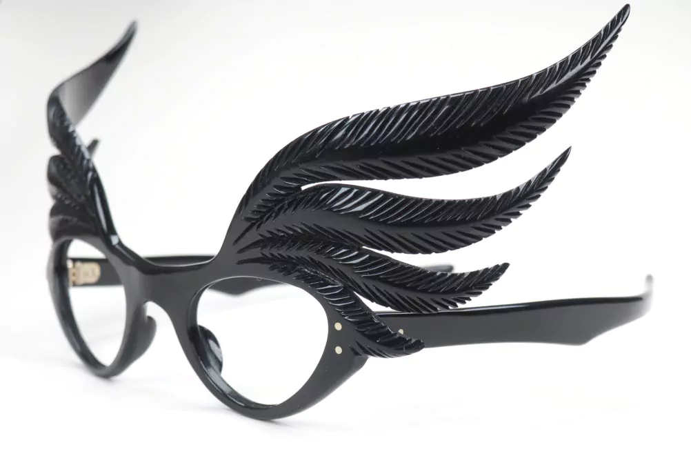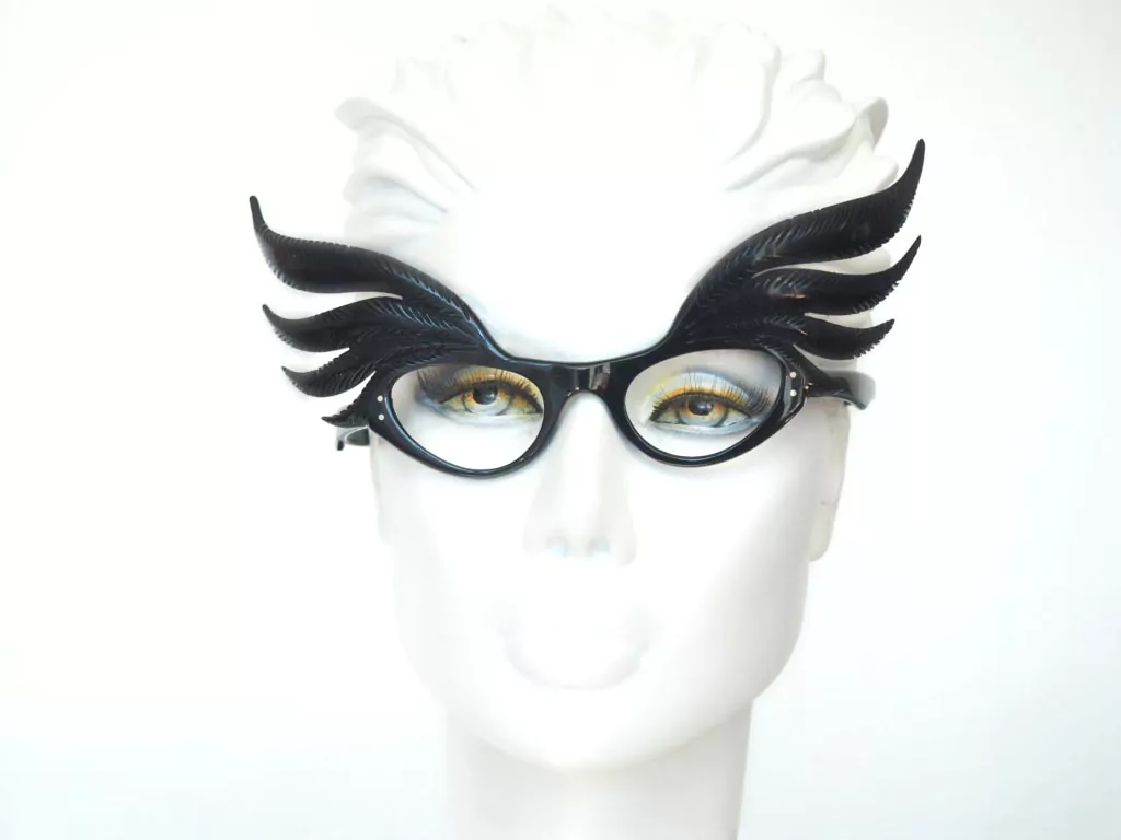 Echte Vintage-Cateyebrille aus hochwertigem schwarzem Baumwollacetat.