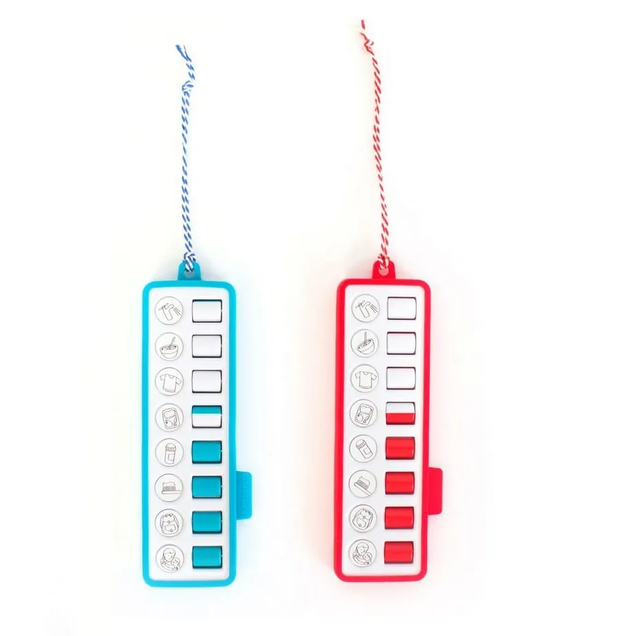 Das Familien-Checkpad ist ein Tagesplaner. Mit dem Checkpad können Sie Ihr Kind bei der Durchführung der täglichen Routineaufgaben visuell unterstützen. Und der Einsatz dieses Planers stimuliert auch die Selbstständigkeit Ihres Kindes. Verwenden Sie das Checkpad, um Ihrem Kind beispielsweise bei der Durchführung der morgendlichen rituellen Aufgaben zu helfen. Verwenden Sie Magnete auf einer Seite des Tagesplaners, um die verschiedenen Aufgaben anzuzeigen, die Ihrem Kind helfen, sich auf die Schule vorzubereiten. Denken Sie daran, sich anzuziehen, zu frühstücken, sich die Zähne zu putzen, Fitnessgeräte einzupacken und zu Mittag zu essen. Ihr Kind kann dann jede Aufgabe auf dem Checkpad einfach abhaken. Und abends können Sie die andere Seite des Checkpads zum Beispiel mit folgenden Aufgaben verwenden: auf die Toilette gehen, Zähne putzen, sich lesen und schlafen gehen.