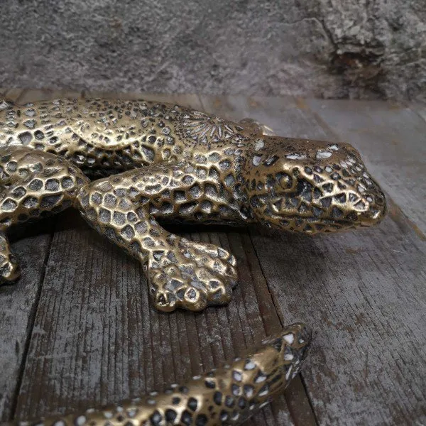 - Exotisches Design: Die Figur zeigt einen kunstvoll gestalteten Gecko mit detaillierter Struktur und geschwungenem Schwanz.