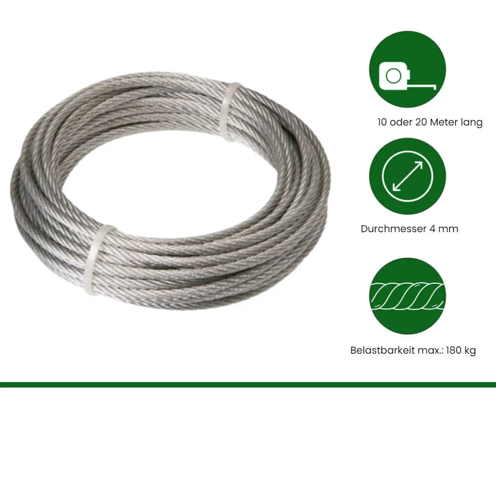 Das Drahtseilsystem ist flexibel einsetzbar. Ob als Rankhilfe, Geländer oder Absperrung .Lassen Sie Ihrer Phantasie freien Lauf.