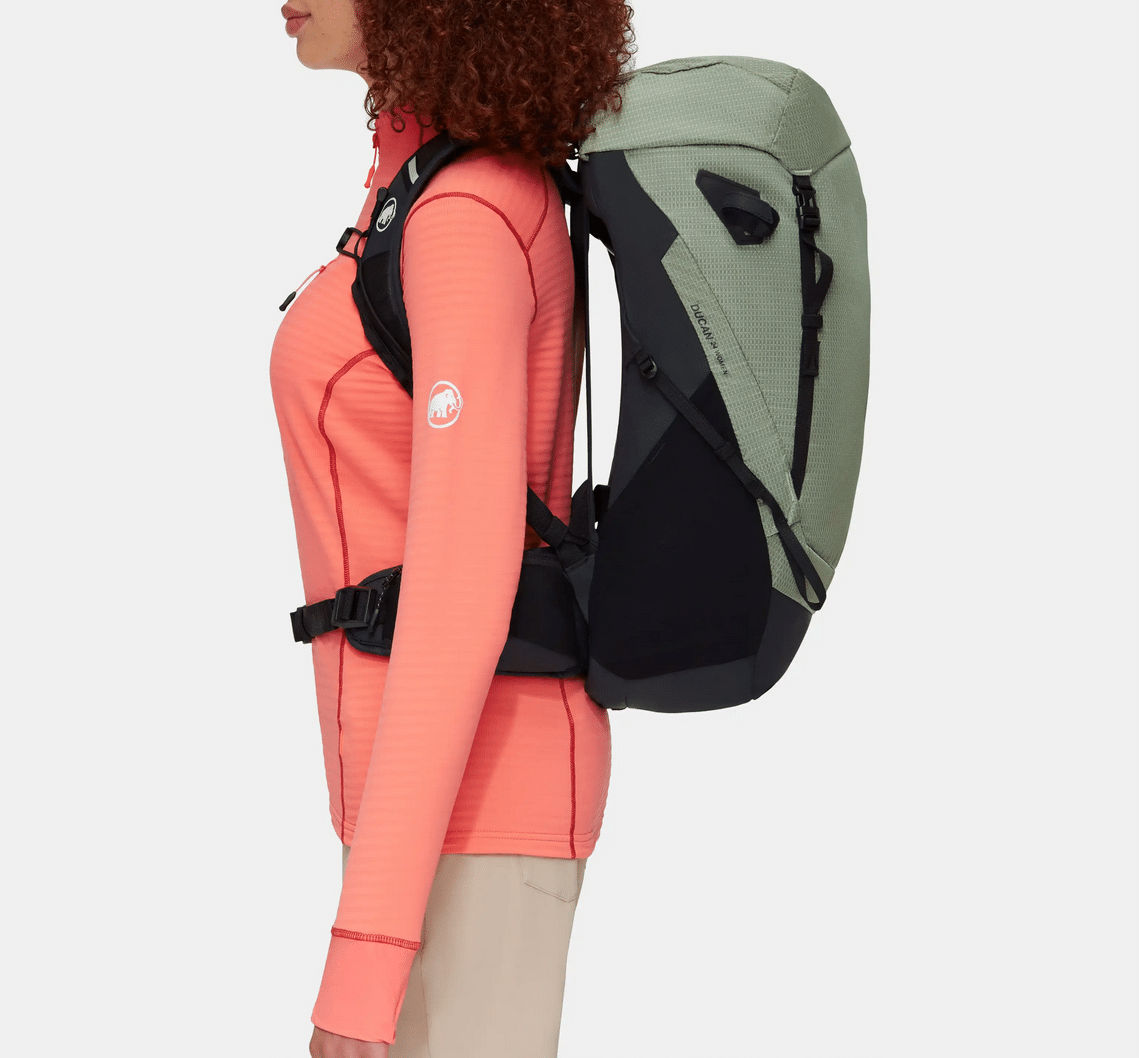 Wanderrucksack im Women Fit. Der Ducan 24 Women überzeugt durch sein leichtes Gewicht. Access on the go ermöglichen selbst beim Tragen die einfach zugänglichen Seitentaschen. Am Hüftgurt befindet sich eine ausklappbare Tasche fürs Mobiltelefon. Mehr Tragekomfort dank Netzrücken für Rückenbelüftung und elastischem Brustgurt. Schulterträger sowie ein an die weibliche Anatomie angepasstes Tragesystem mit Hüftgurt und Rückenteil. Hiking Backpack – für die Frau gemacht.