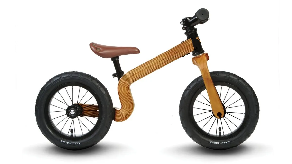 Der Bonsai ist wie sein Namensvetter klein aber oho. Dieses außergewöhnlich schöne Holzlaufrad besitzt einen abgedichteten Lagerradsatz und ein leichtes Aluminium-Steuerrohr. Der optisch ansprechende Rahmen aus wasserfest verleimten Birkenholz hat die Vorzüge eines Aluminiumrahmens. Damit kommt der Bonsai wie ein Großer daher und der Fahrer macht nicht nur auf dem Weg in den Kindergarten eine gute Figur.