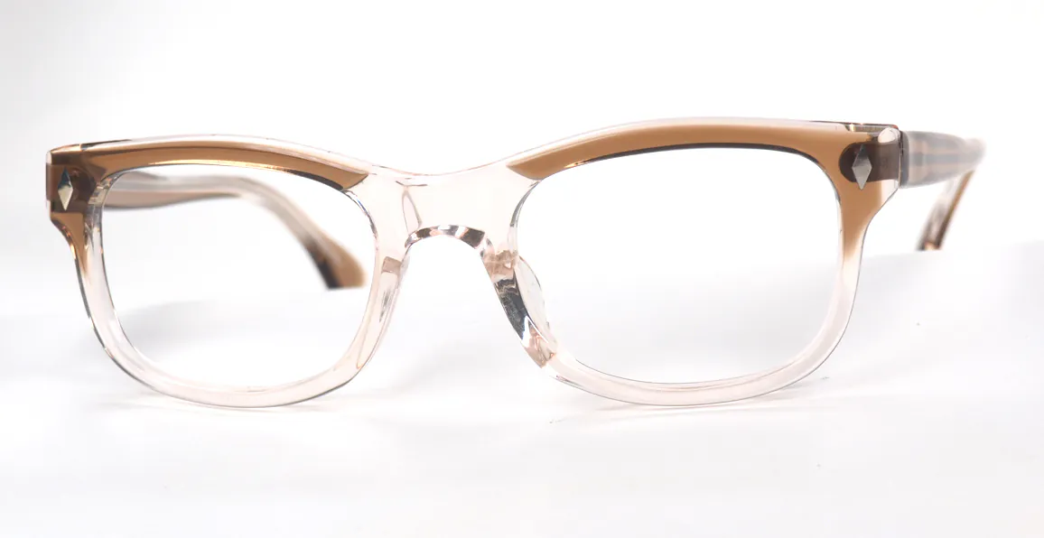 Echte kleine Vintagebrille, 1/4kaschiert mit hellbrauner Browline. Die Brille ist aus hochwertigem Baumwollacetat hergestellt.