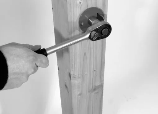 Die geniale Einschraub-Hilfe erleichtert die Ausrichtung des Flechtzaunhalters am Pfosten, ohne die Oberfläche zu beschädigen.