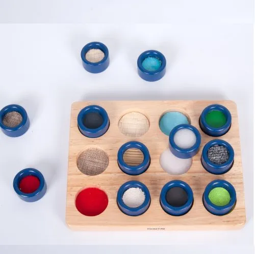 Das Feel- und Suchboard (Touch and Match) fördert die taktile Reizverarbeitung. Auf spielerische Weise üben Kinder die Entwicklung von Gedächtnis, Feinmotorik und Berührung. Identifizieren und ordnen Sie die 12 taktilen Scheiben an. Jede Disc hat eine andere strukturierte Oberseite. Verwenden Sie dieses Set als Memory-Spiel oder um Ihr Kind herauszufordern, mit taktilen Reizen umzugehen.