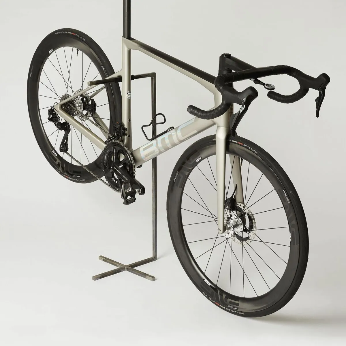PlusMinus – der Name ist Programm. Bei der Gestaltung des neuen Medium Size Bike Stands stehen die beiden Symbole sinnbildlich für das zurückhaltende, minimalistische Design. Das Rad kann so platzsparend und sicher aufbewahrt werden und ohne viel Ablenkung seinen vollen Glanz entfalten. Das Plus dient hierbei als stabile Basis, während das Minus die filigrane Aufhängung bildet. Der abnehmbare Clip aus weichem TPU Kunststoff schützt das Rad beim Aufhängen vor Beschädigungen. Am Fuß sind Filzstopper angebracht, die Kratzer auf dem Boden verhindern.