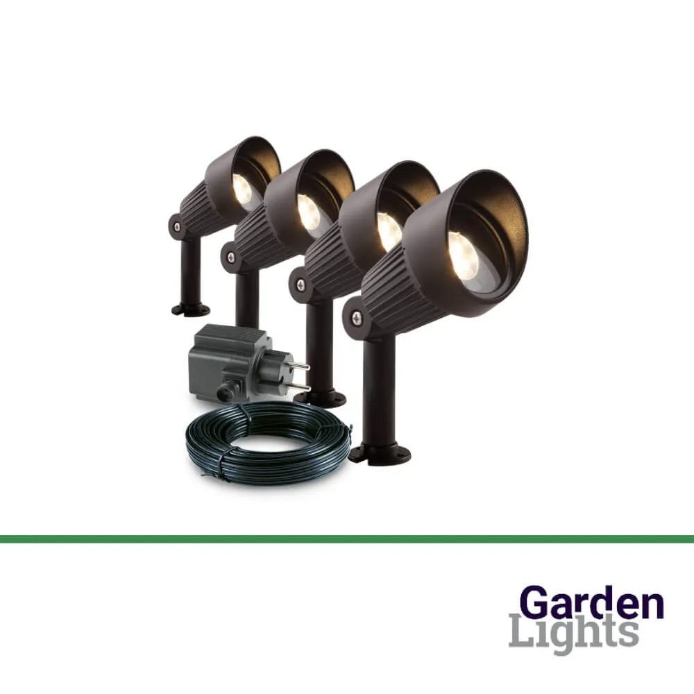 Set bestehend aus 3 Edelstahl-Spots, einem 8M Hauptkabel und einem 12W Transformator. Ein Set bestehend aus drei Outdoor-Spots, mit denen Sie ganz einfach Ihren Gartenweg, Ihr Schwimmbad oder bestimmte Sträucher beleuchten können. Das sorgt nicht nur für einen sehr schönen Effekt, sondern auch für mehr Sicherheit im Garten, wenn Sie mehrere Gartenspots nebeneinander platzieren.