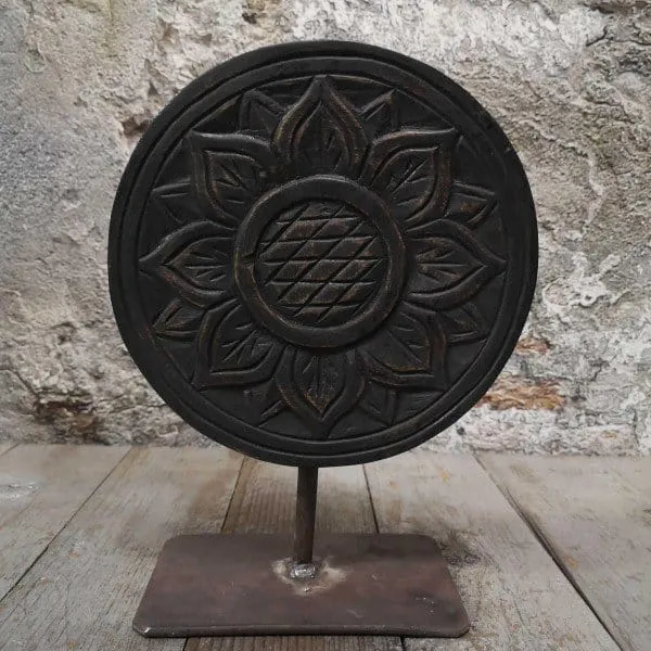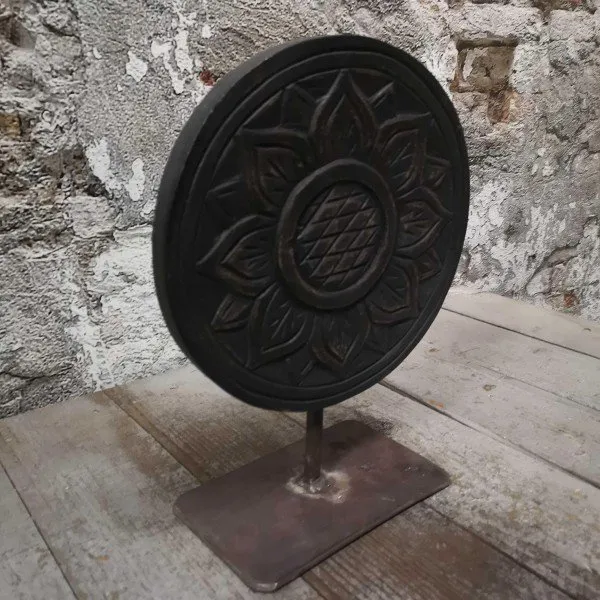 - Florales Design: Die feinen Schnitzereien in Form einer stilisierten Blume verleihen dem Objekt eine elegante und natürliche Optik.