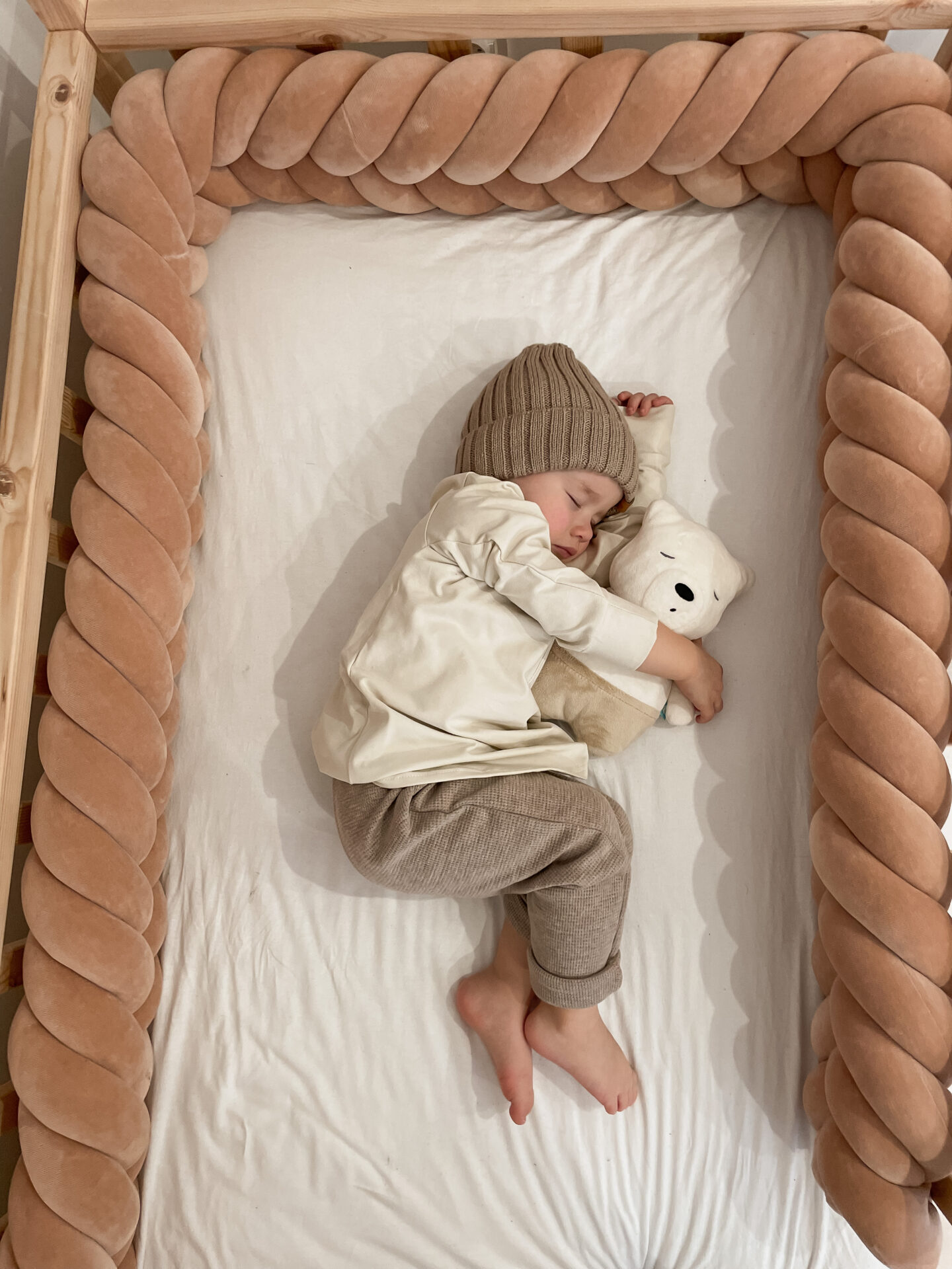 Das geflochtene Bettnest ist ein Produkt, das das Kind vor Stößen schützt, verhindert, dass Hände/Beine zwischen die Bettgitter geraten, und schützt das Kind vor der kalten Wand. Bietet Ihrem Kind Komfort und Sicherheit. Dies ist eine ideale Lösung für Kinder, die aktiv sind und sich gerne umdrehen.
