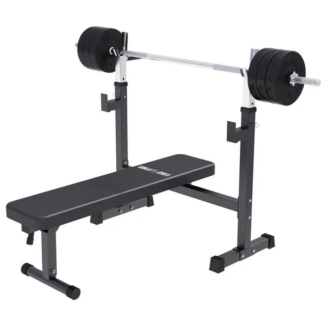 GORILLA SPORTS® Hantelbank Die GORILLA SPORTS® Trainingsbank mit Ablage vereint Funktionalität und Stabilität für Dein perfektes Workout. Ob Bankdrücken oder andere Übungen – sie ist Dein verlässlicher Trainingspartner. Nutze die Hantelbank mit Gewichten, um Deine Kraft zu steigern und Dein Zuhause in ein echtes Fitnessstudio zu verwandeln! Technische Informationen: Hantelbank: Maße Gesamt (LxBxH): 130x97x122cm Geklappt (LxBxH): 52x97x141cm Rückenpolster (LxBxH): 110×24,5x8cm Material: Stahl, Schaumstoff und PU-Leder Max.Belastbarkeit: Rack: 200kg, Bank: 300kg Gewicht: 17kg Farbe: Schwarz Hantelscheiben: 1,25 kg (⌀: 16,5cm, Stärke: 3,3cm) 2,5 kg (⌀: 21cm, Stärke 4,3cm) 5 kg (⌀: 25,5cm, Stärke 5cm) 10 kg (⌀ 33cm, Stärke 5,7cm) 15 kg (⌀ 33cm, Stärke 5,7cm) Geeignet für Stangen mit einem Durchmesser von 30 mm Material: Hochverdichtete Zementmischung mit Kunststoffummantelung 35 cm Kurzhantelstange: Gewicht: 2,5kg Scheibenaufnahme: 10,4cm 170 cm Langhantelstange: ⌀: 30/31mm Gewicht: 10kg Max. Belastbarkeit: 200kg Material: 101 120 cm SZ-Stange: ⌀: 30/31mm Gewicht: 8kg Max. Belastbarkeit: 180kg Lieferumfang: 1 x Hantelbank mit Ablage (101328), im Set Deiner Wahl: 40 kg: 1 x Hantelbank 6 x 5kg Scheibe 1 x Langhantelstange 2 x Sternverschluss 1 x Bedienungsanleitung (DE/EN/IT/FR/ES) 70 kg: 1 x Hantelbank 4 x 1,25kg Scheibe 4 x 2,5kg Scheibe 4 x 5kg Scheibe 2 x 10kg Scheibe 2 x Kurzhantelstange 1 x Langhantelstange 6 x Sternverschluss 1 x Bedienungsanleitung (DE/EN/IT/FR/ES) 100 kg: 1 x Hantelbank 4 x 1,25kg Scheibe 4 x 2,5kg Scheibe 2 x 5kg Scheibe 2 x 10kg Scheibe 2 x 15kg Scheibe 2 x Kurzhantelstange 1 x Langhantelstange 1 x SZ-Stange 8 x Sternverschluss 1 x Bedienungsanleitung (DE/EN/IT/FR/ES) Hinweis: Die Farben können leicht von den Abbildungen abweichen. Hinweis: Die Lieferung auf Inseln ist nicht möglich. Hinweis: Die Dekoration auf den gezeigten Bildern ist nicht im Lieferumfang enthalten.