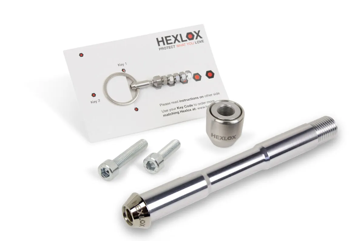 Grundsätzlich werden mit den Hexlox-Sets folgende Komponenten gesichert:Sattel, Sattelstütze, Vorderrad, Hinterrad, Vorbau, E-Bike-Akku.