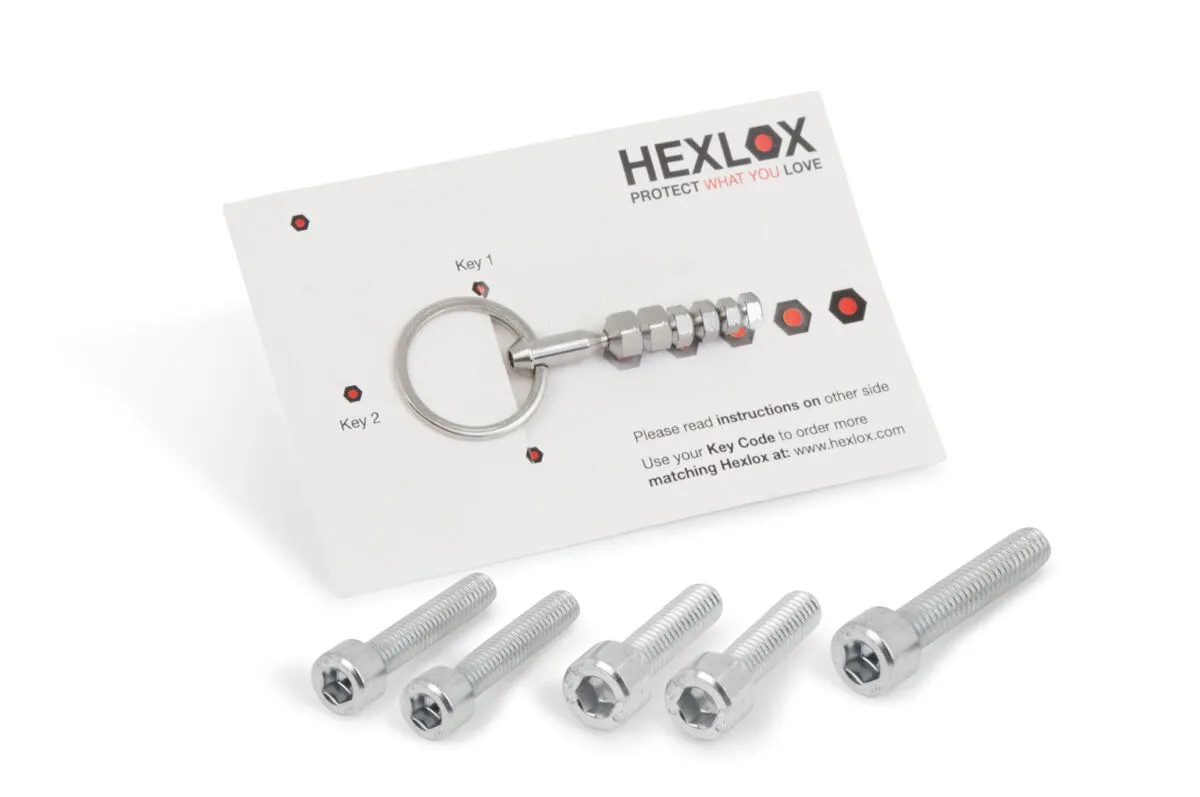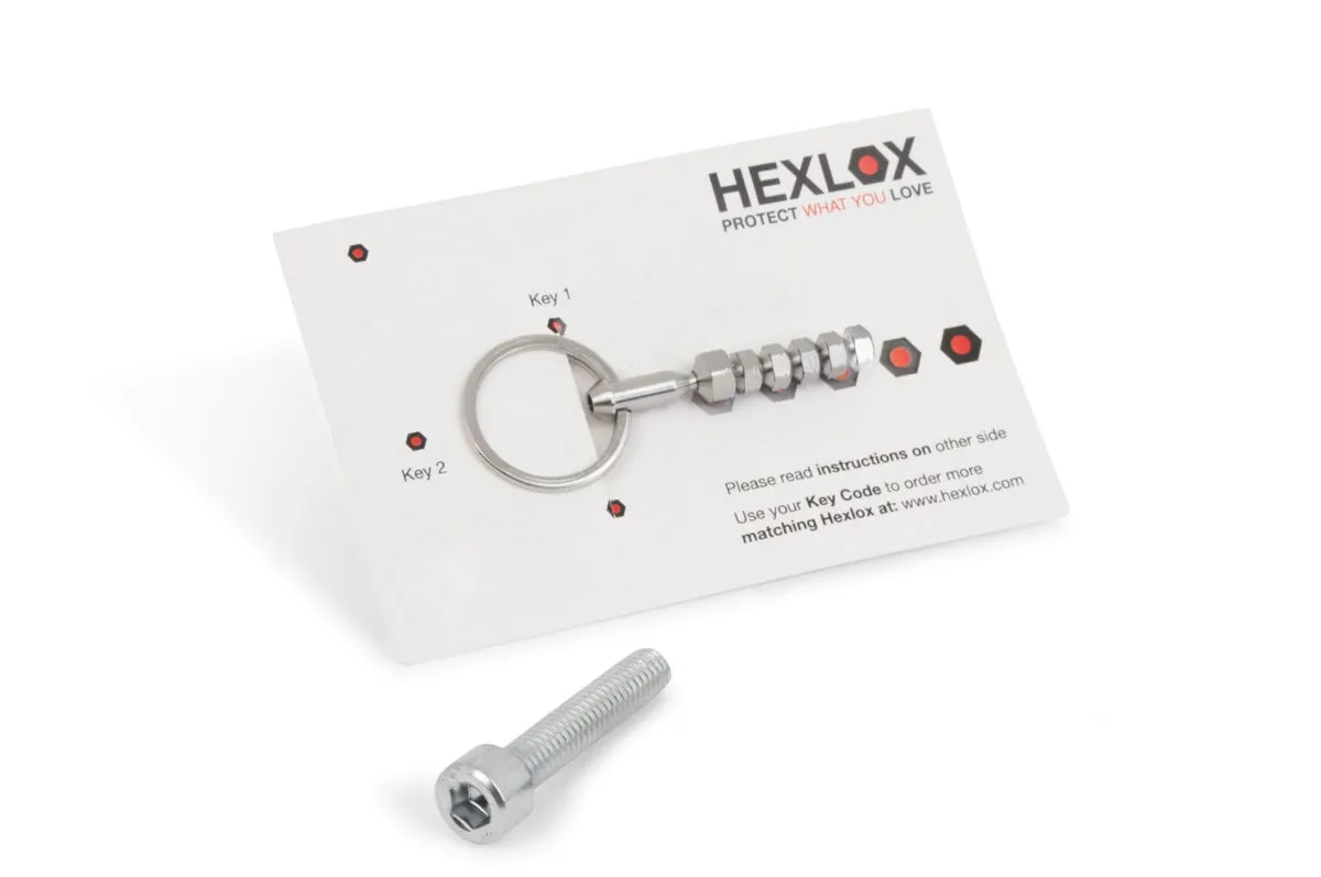 Hexlox funktioniert nur an Stahlschrauben, weshalb an unseren Modellen Edelstahl-Inbusschrauben ersetzt werden müssen, diese sind im Lieferumfang enthalten.