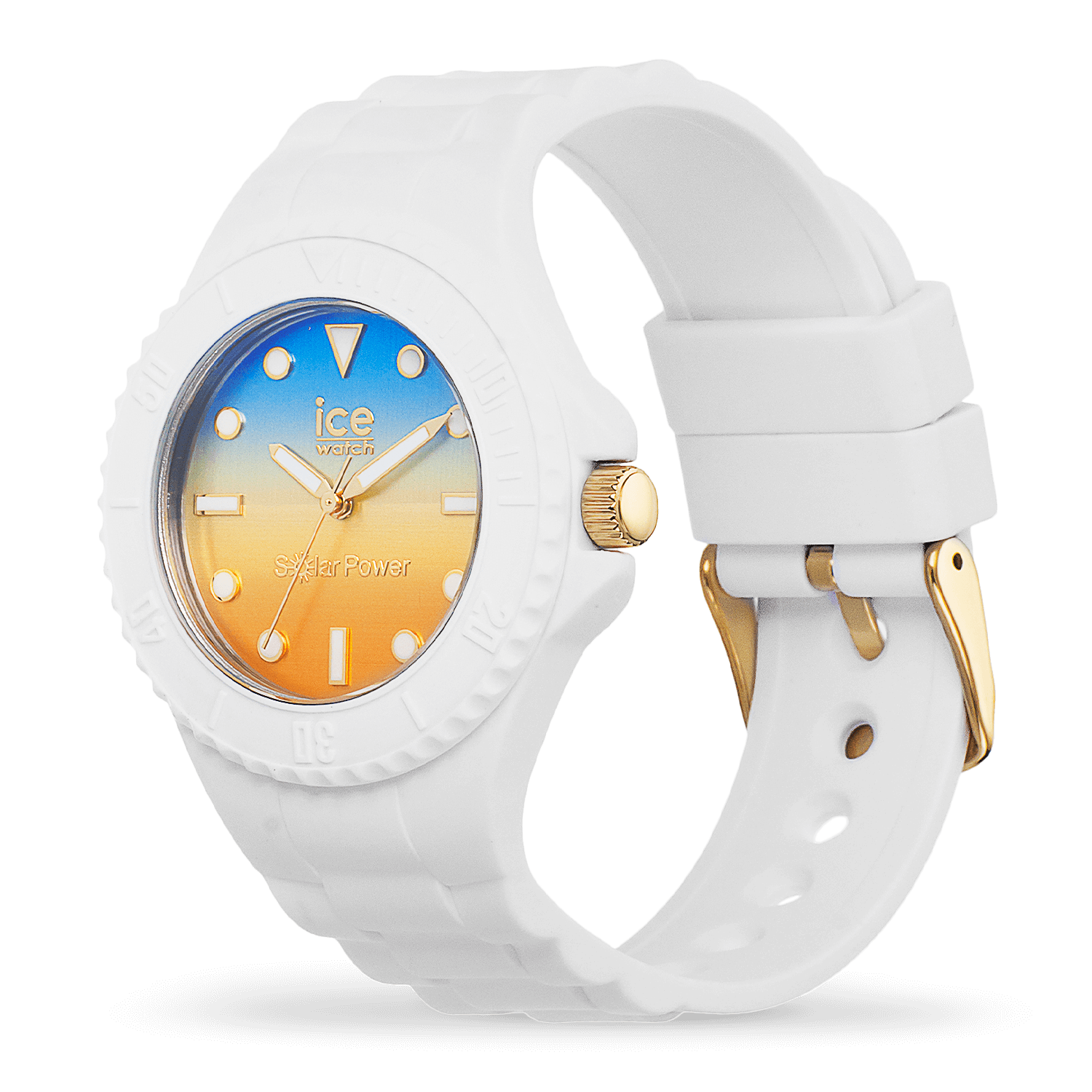 Lassen Sie sich vom spritzigen und trendigen Stil der ICE generation – Sunrise verführen! Der solarbetriebene Zeitmesser ist das ultimative minimalistische Statement. Setzen Sie sie einfach natürlichem oder künstlichem Licht aus, um sie aufzuladen, dann lehnen Sie sich zurück und genießen Sie, wie sie hält und hält! Diese makellos weiße Uhr wird die Fans strahlender Armbanduhren begeistern. Dank ihres ultraweichen Silikonarmbands und ihres Zifferblatts mit Farbverlauf verleiht sie Ihren Outfits einen modernen Fashion-Touch! Jetzt sind Sie dran!