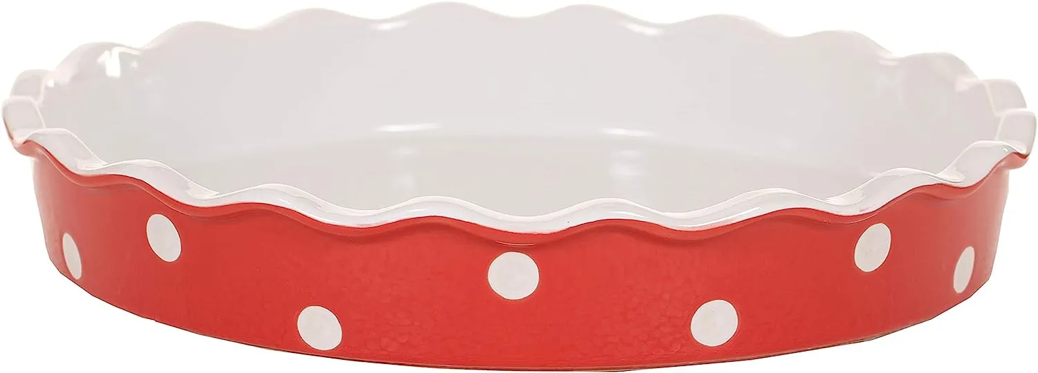 Darüber hinaus ist die Form auch ästhetisch ansprechend. Das rot-weiße Polka-Dot-Muster verleiht der Küche eine fröhliche Note und macht die Form zu einem echten Blickfang. Egal, ob Sie Ihre Speisen für Gäste servieren oder einfach nur Ihre Familie verwöhnen möchten, mit dieser Quiche Tarte Form präsentieren Sie Ihre Kreationen stilvoll und einladend.