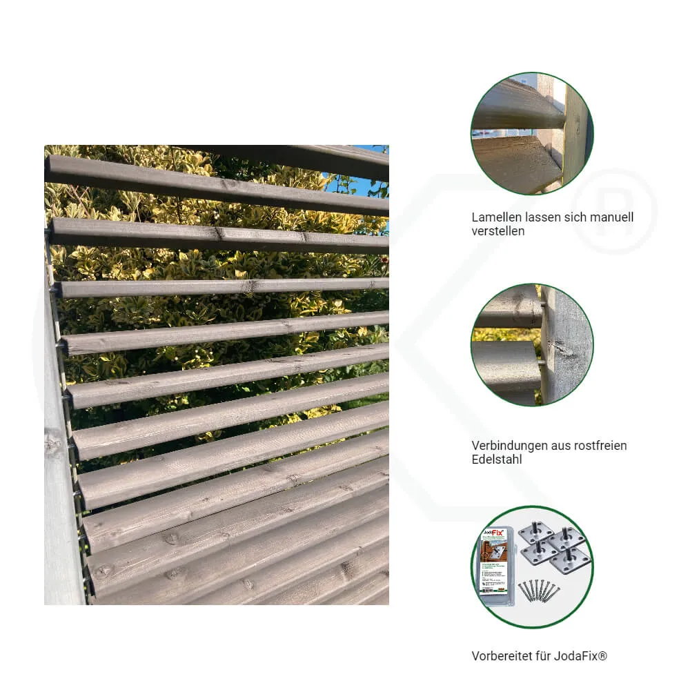 Wind- und Sichtschutz für all die, die sich nicht entscheiden wollen. Dank der verstellbaren Lamellen können Sie es luftig leicht oder geschützt haben – mehr Vielfalt geht nicht.