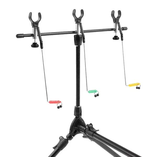 Erfolg in jeder Angelumgebung. Unser Rod Pod ist mit Bissanzeigern kompatibel und unterstützt bis zu drei Ruten mit sechs Rasten und drei Swingern.