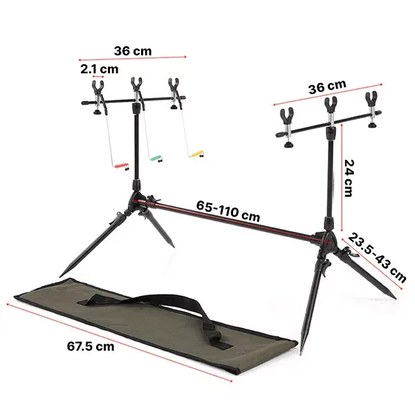 Verbessern Sie Ihr Angelspiel mit dem Threo Carp Rod Pod – Ihrem ultimativen Abenteuerbegleiter. Unser Pod ist äußerst tragbar, kompatibel mit Bissanzeigern und bietet Platz für bis zu drei Ruten mit sechs Ablagen und drei Schwingern. Das aus robustem Aluminium gefertigte Pod sorgt mit seinem Vier-Punkt-Bodenkontakt für ultimative Stabilität.