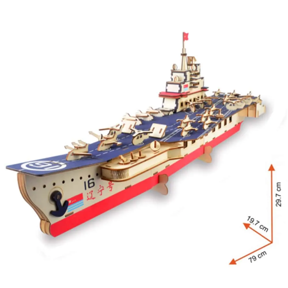 Kitcreatives Flugzeugträger Bausatz aus Holz 3D Puzzle DIY 79 x 19,7 x 29,7 cm