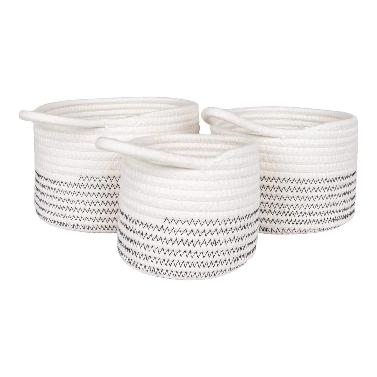Das neutrale Farbschema in Weiß und Grau unterstreicht den zeitlosen Charakter der Körbe und macht sie zu einem vielseitigen Wohnaccessoire. Egal, ob Sie sie als Aufbewahrungslösung oder als Dekoration verwenden – die Körbe sind ein stilvolles Highlight in jedem Raum.