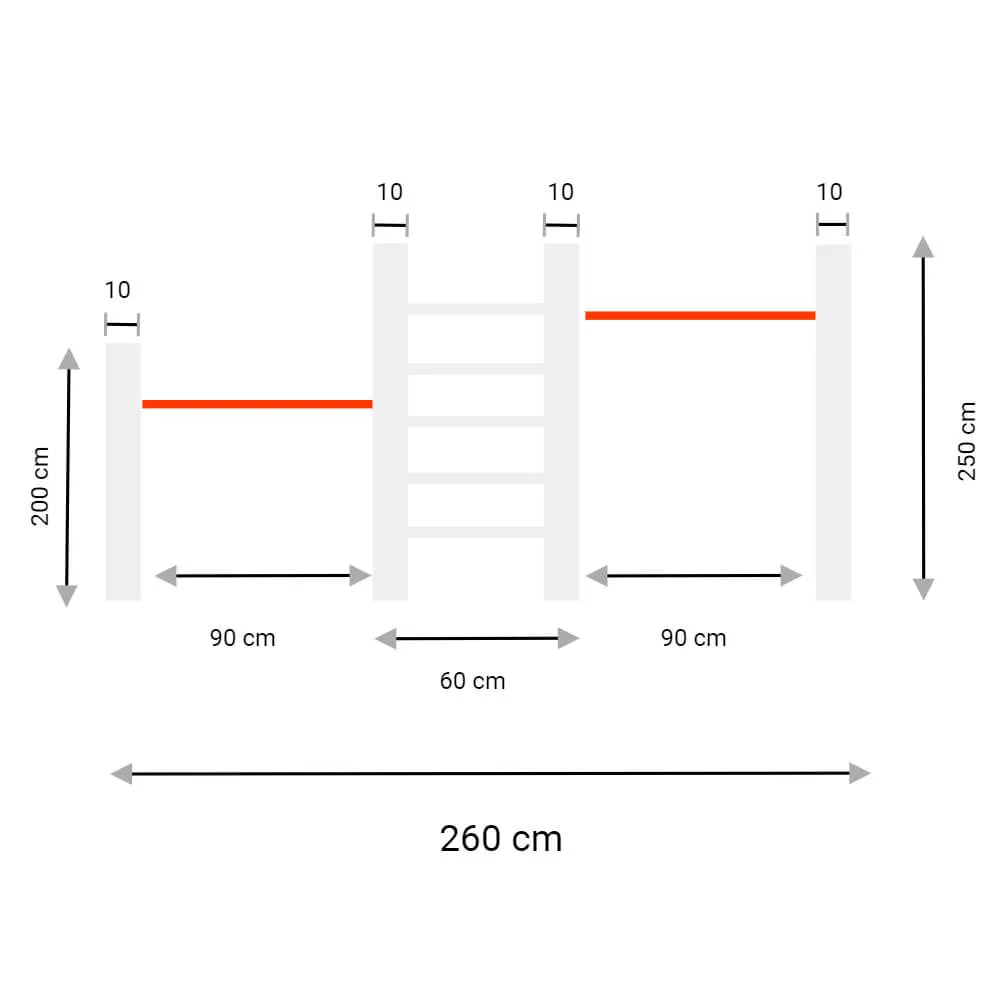 Das Kletter-Turnreck ist ein tolles Spielgerät für Ihre Kinder, das aus zwei Reckstangen und einer Sprossenleiter besteht. Diese erleichtert Ihren Kindern das Erreichen der Reckstange. Kletterleiter und zwei rote Reckstangen sind inklusive.