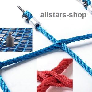 Dieses Kletternetz (MW div. Maschenweiten) aus Herkulesseil mit Stahlseele und Kreuzstich-Knotenverbindung ist besonders geeignet für die Outdoor-Montage auf öffentlichen Spielplätzen.