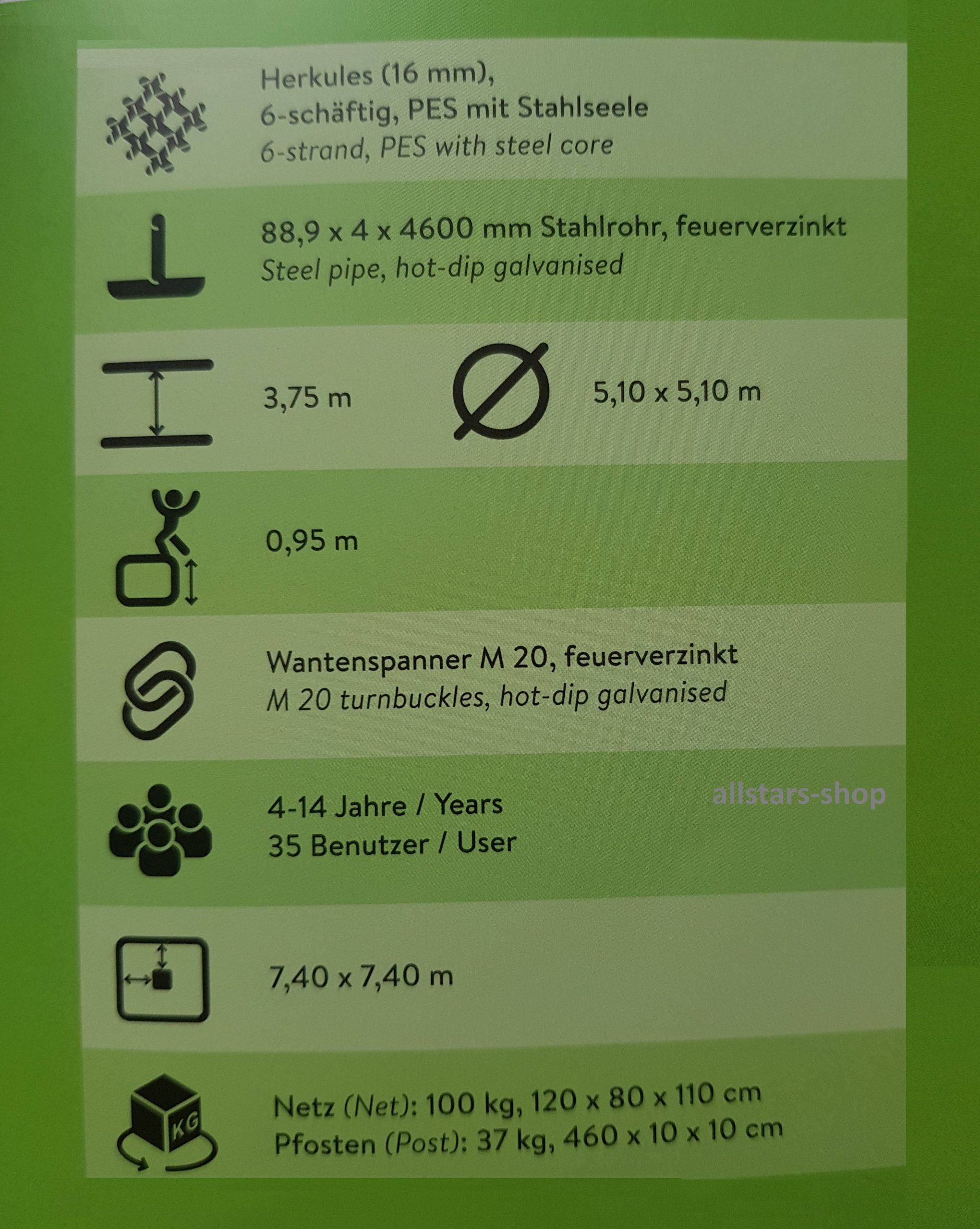 * Gerätehöhe: 3,75 m