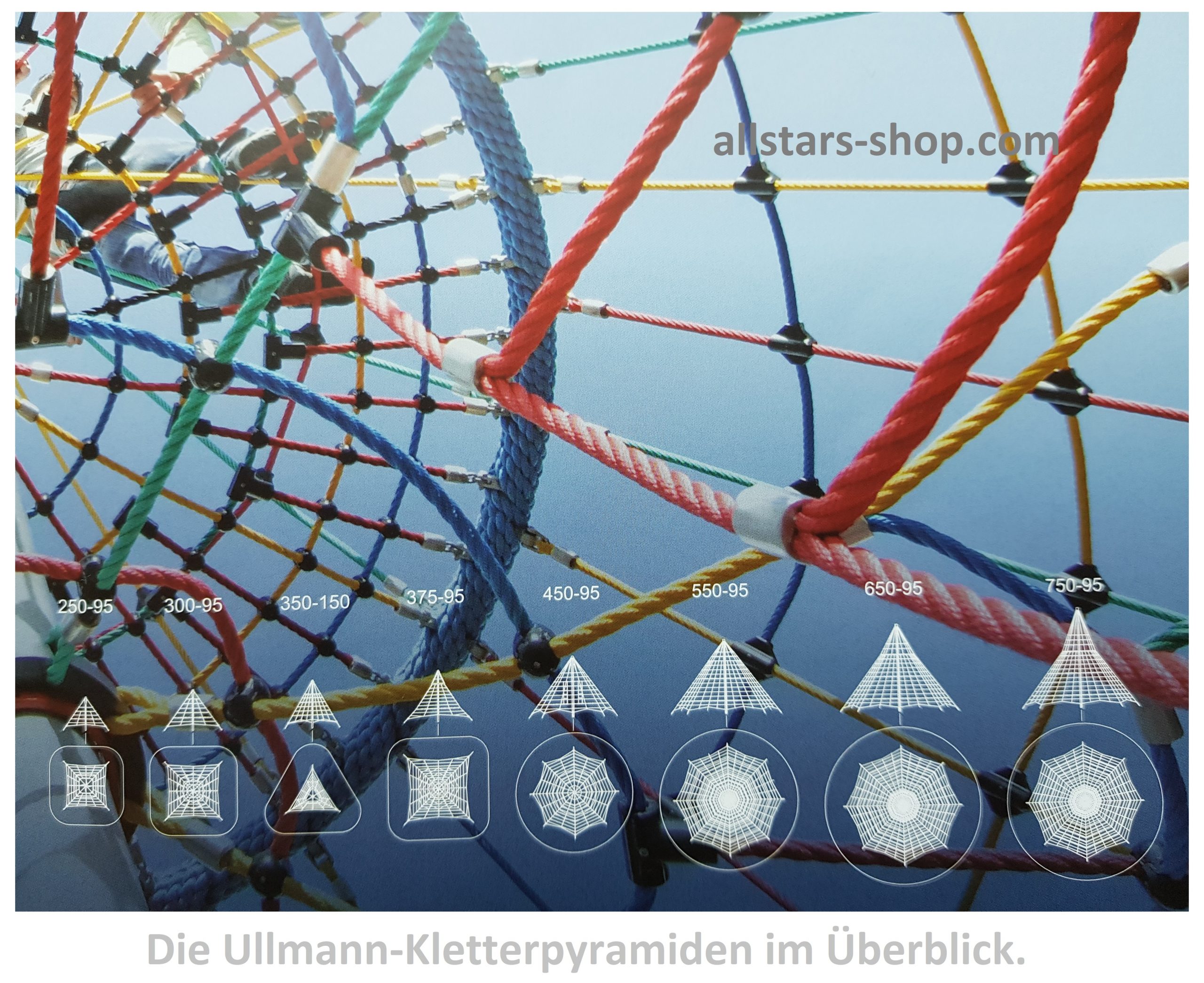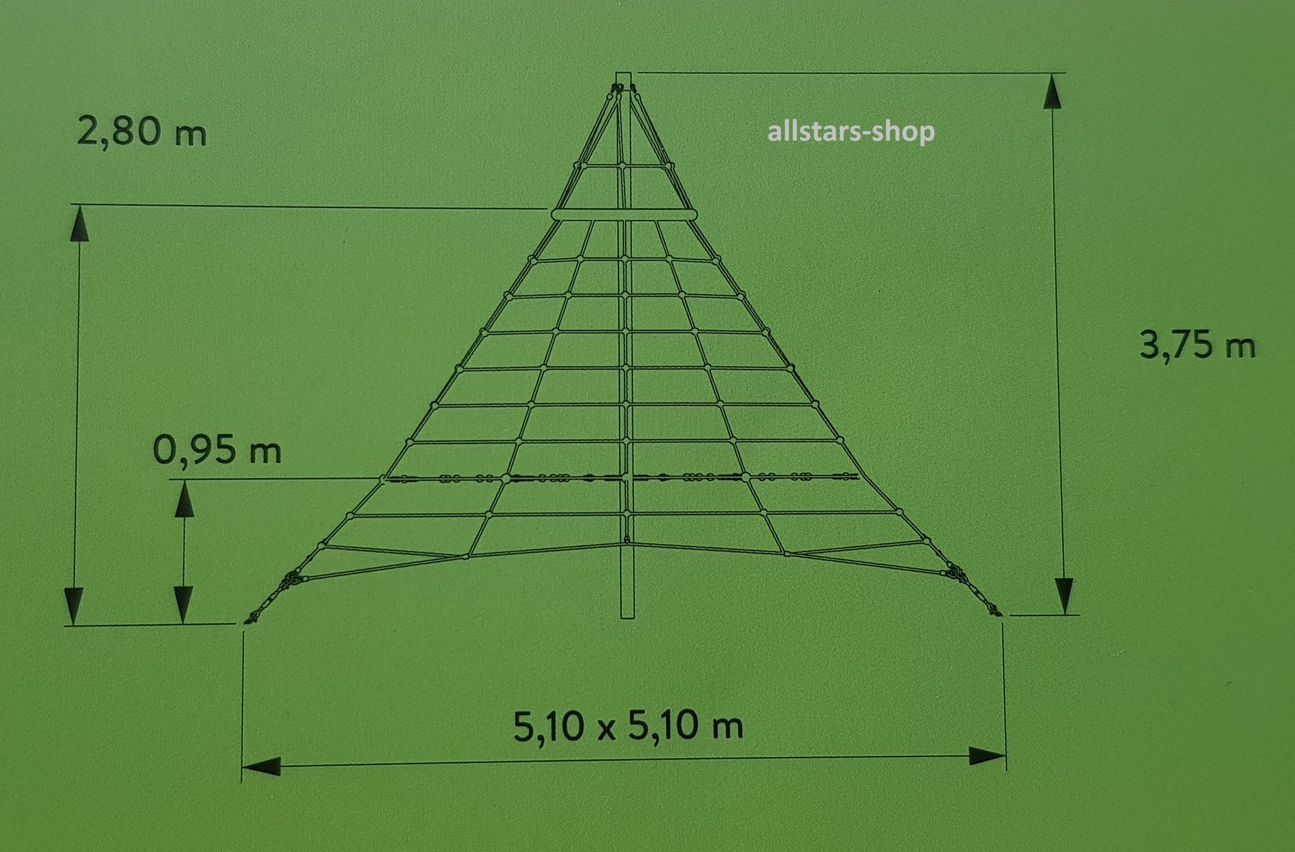 Die riesige Kletteranlage für viele Kinder Typ 375-95 bietet maximal großen Spielspaß in Form einer Seilpyramide.
