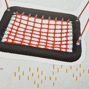 Der klassische Kletterturm Typ 375-95 mit Kletternetzen und Spielebenen ist sehr langlebig, witterungsbeständig und nahezu unverwüstlich. Er gehört zu den stabilsten Klettertürmen, die es zur Zeit am Markt gibt. Die Kletterseile sind aus starken USACORD Long-Life 6-schäftigen PES-Seilen mit Stahlseele gefertigt, welche mit Kugelverbindern verbunden sind. Die Pfosten bestehen aus feuerverzinktem Stahlrohr und werden einbetoniert.