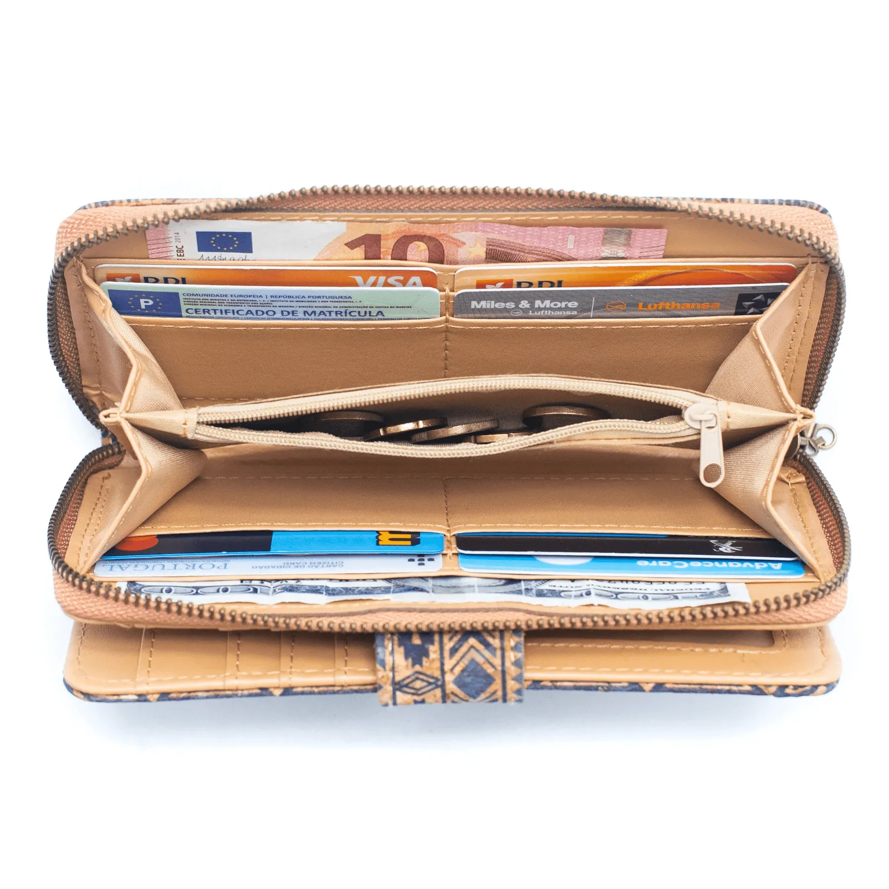Eine wunderschöne Brieftasche aus Kork mit einem geräumigen Innenraum , um Ihre wichtigen Gegenstände bequem zu transportieren . Es hat eine Innentasche mit Reißverschluss, acht Kreditkartenfächer, zwei Innentaschen. Es besteht aus einfachem Korkmaterial, das umweltfreundlich, sehr weich, flexibel und langlebig ist!