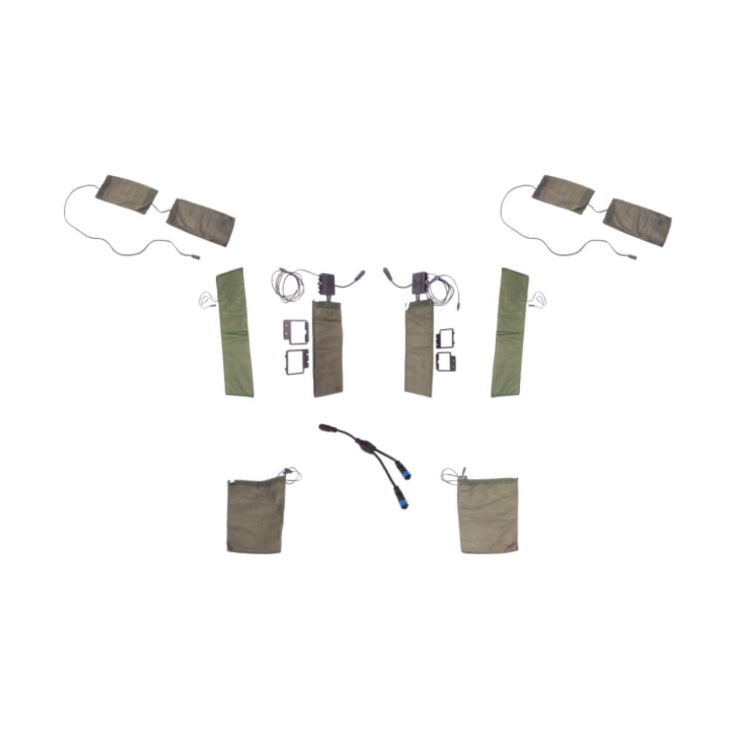 2 Heizelemente für die Brust (links/rechts) mit integriertem Verteilerblock und Anschluss für beheizbare Handschuhe