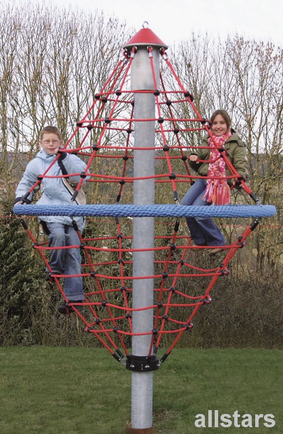 Der Hally-Gally-Kletterwirbel besticht nicht nur durch ihr tolles Design, sondern vor allem durch seine hervorragende Qualität. Er ist die perfekte Alternative zwischen „Groß“ und „Klein“. Wenn sich die Kinder am Mittelring festhalten und drehen lassen, kommt ein Hauch vom Fliegen auf. Auf dem Hally-Gally-Midi-Kletterwirbel können viele Kinder gleichzeitig rumturnen und ihren Spaß haben. Dank der ausgefeilten Konstruktion und der robusten Ausführung erfreut dieses Spielgerät sie viele Jahre. Der Mittelpunkt ist ein 3,80 Meter hoher robuster Stahlmast um den sich ein buntes Kletternetz befindet. Ein Aluminiumring sorgt für praktische Sitzmöglichkeiten, so können sich die Kleinen auf dem Weg nach oben ausruhen. Der Drehschuh zum Einbetonieren, sorgt stets für einen sicheren Halt.