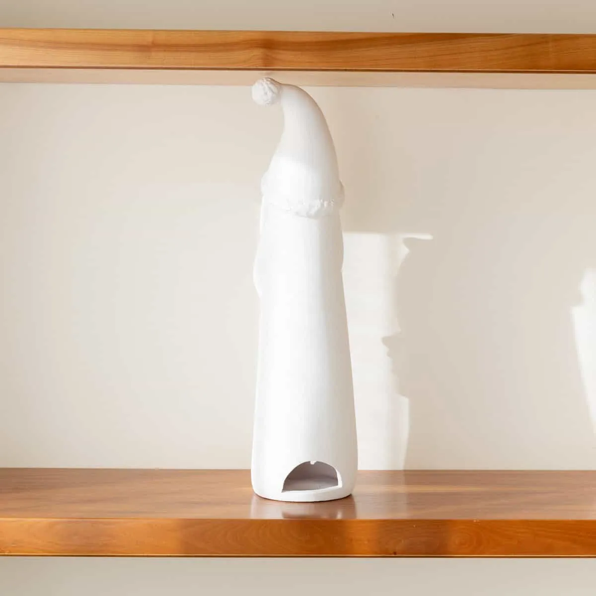 Ein Highlight des Oito Atelier Keramik Weihnachtsmanns ist die integrierte Kerzenbeleuchtung. Diese sorgt nicht nur für eine stimmungsvolle Beleuchtung, sondern schafft auch eine gemütliche und festliche Atmosphäre. Die warmen Lichter reflektieren sanft von der Keramikoberfläche und tauchen dein Zuhause in ein weiches, festliches Licht.