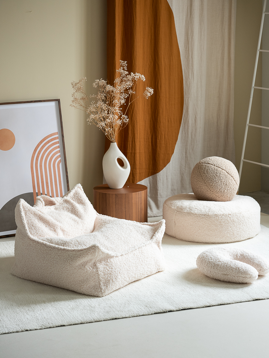 Ottoman ist die perfekte Ergänzung für jedes Kinderzimmer! Dieser niedliche Hocker wurde als funktionaler und stilvoller Sitz für Ihr Kind entworfen. Die runde Form bietet viel Platz zum Sitzen und Entspannen und der weiche Teddystoff macht ihn warm und einladend. Es ist außerdem stilvoll, leicht und einfach zu transportieren, was es zu einer großartigen Option für jeden Raum in Ihrem Zuhause macht.